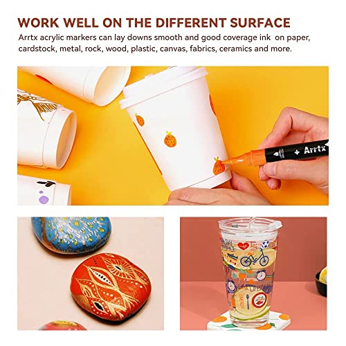 Arrtx Acrylic Paint Pens, 32 Colors Brush Tip and Fine Tip (Dual Tip) Paint Markers for Rock Painting, Water Based Acrylic Painting Supplies for Fabric Painting,Wood, Plastic, Canvas, Easter Egg