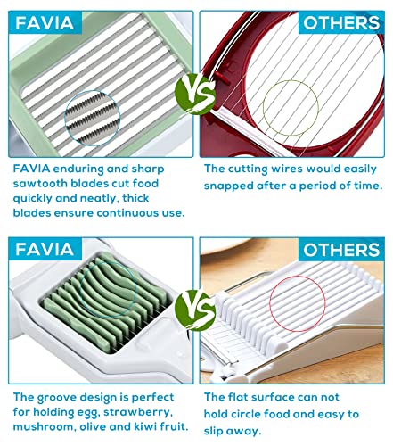 FAVIA Egg Slicer for Hard Boiled Eggs Mushroom Strawberry Cherry Tomato Kiwi Fruit with 9 Stainless Steel Blades Multipurpose Handy Kitchen Gadgets BPA Free Dishwasher Safe (Pastel Green)
