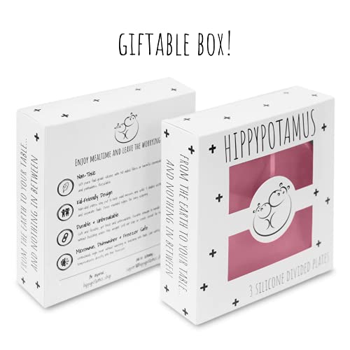 Hippypotamus Toddler Plates with Suction – Baby Plates – 100% Food-Grade Silicone Divided Plates – BPA Free – Dishwasher Safe – Set of 3 (Pink/Mint/Lavender)