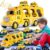 - 【EASY TO USE】- just gently push the large construction vehicle forward and they will run forward on their own. It can set off with up to 6 mini cars! Your toddler can also open the tailgate and unload the mini-vehicle. In addition, push the mini car toys forward and then let go and they will run forward on their own. The construction truck cab and the trailer behind can be separated at will, and the front end of the big truck can be turned. The pull-back design makes them go faster!