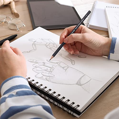 • PREMIUM DRAWING SKETCH PENCILS – A wide variety of hardness for all your artwork needs. Includes 12 pre sharpened professional quality graphite pencils (14B 12B 10B 8B 6B 4B 2B B HB F H 2H). This range is ideal for fine detail illustrations, journaling, photorealistic drawings, sketching, blending, shading, smudging, and adding texture.