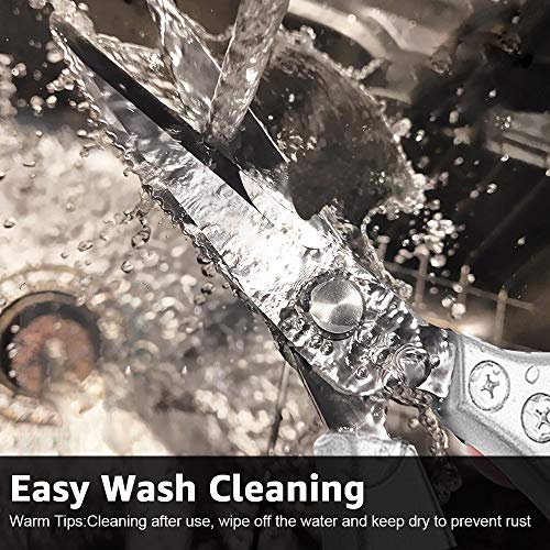• ✄Well Made Japanese SK5 SS – Like chef’s knives, our kitchen shear blades are made from Japanese high-carbon SK5 stainless steel. It`s designed to stay sharp, as it holds an edge better than those made of common stainless steel (i.e. 404), it can be made much sharper, and it is easier to sharpen. They are rust-resistant (this means they’ll last you a lifetime)and have extra-thick blades (4MM thicker than other kitchen shears)for strength and durability.