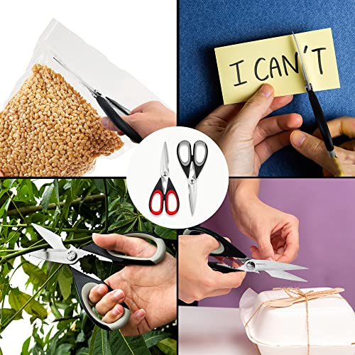 - [TWO PACKS]:Includes 2 Pack of 8.2 inches kitchen scissors,black red, black gray. Different color handles can be used in different places,2 special scissors are suitable for most items that need to be cut. for best results, do not allow shears to soak in water and always dry thoroughly promptly after washing.