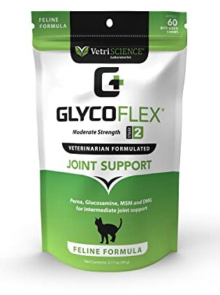 Vetriscience Glycoflex 2 Hip and Joint Supplement with Glucosamine for Cats, 60 Chews – Vet Formulated with MSM, DMG and Perna