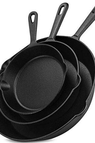 Utopia Kitchen – Saute fry pan – Pre-Seasoned Cast Iron Skillet Set 3-Piece – Nonstick Frying Pan 6 Inch, 8 Inch and 10 Inch Cast Iron Set (Black)