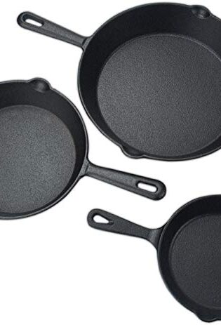 Utopia Kitchen – Saute fry pan – Pre-Seasoned Cast Iron Skillet Set 3-Piece – Nonstick Frying Pan 6 Inch, 8 Inch and 10 Inch Cast Iron Set (Black)